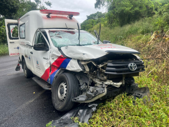 Um grave acidente envolvendo uma ambulância do município de Nova Ibiá e um caminhão caçamba foi registrado na manhã desta quinta-feira (23), na rodovia BA-650, no trecho que liga Ipiaú a Ibirataia. A colisão frontal aconteceu na localidade conhecida como “Curva da Garganta”, ponto considerado crítico devido ao histórico de acidentes e à periculosidade acentuada.